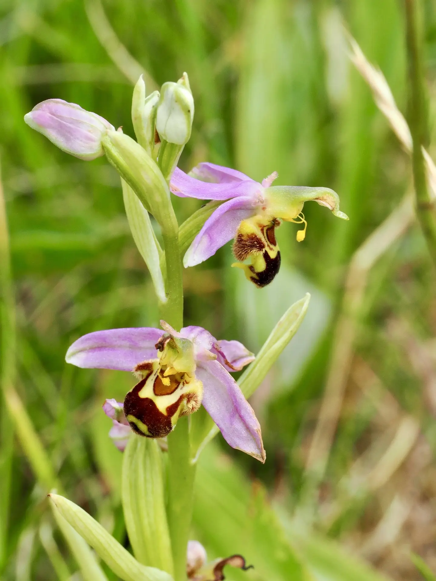 There are large areas of North Wales without Bee Orchid records, so it's well worth looking out for them in suitable areas. Limestone chippings are widely used in construction and have the potential to create suitable calcareous habitat in areas where the underlying geology wouldn’t naturally support Bee Orchids. A great example of this is at the RSPB Conwy reserve.