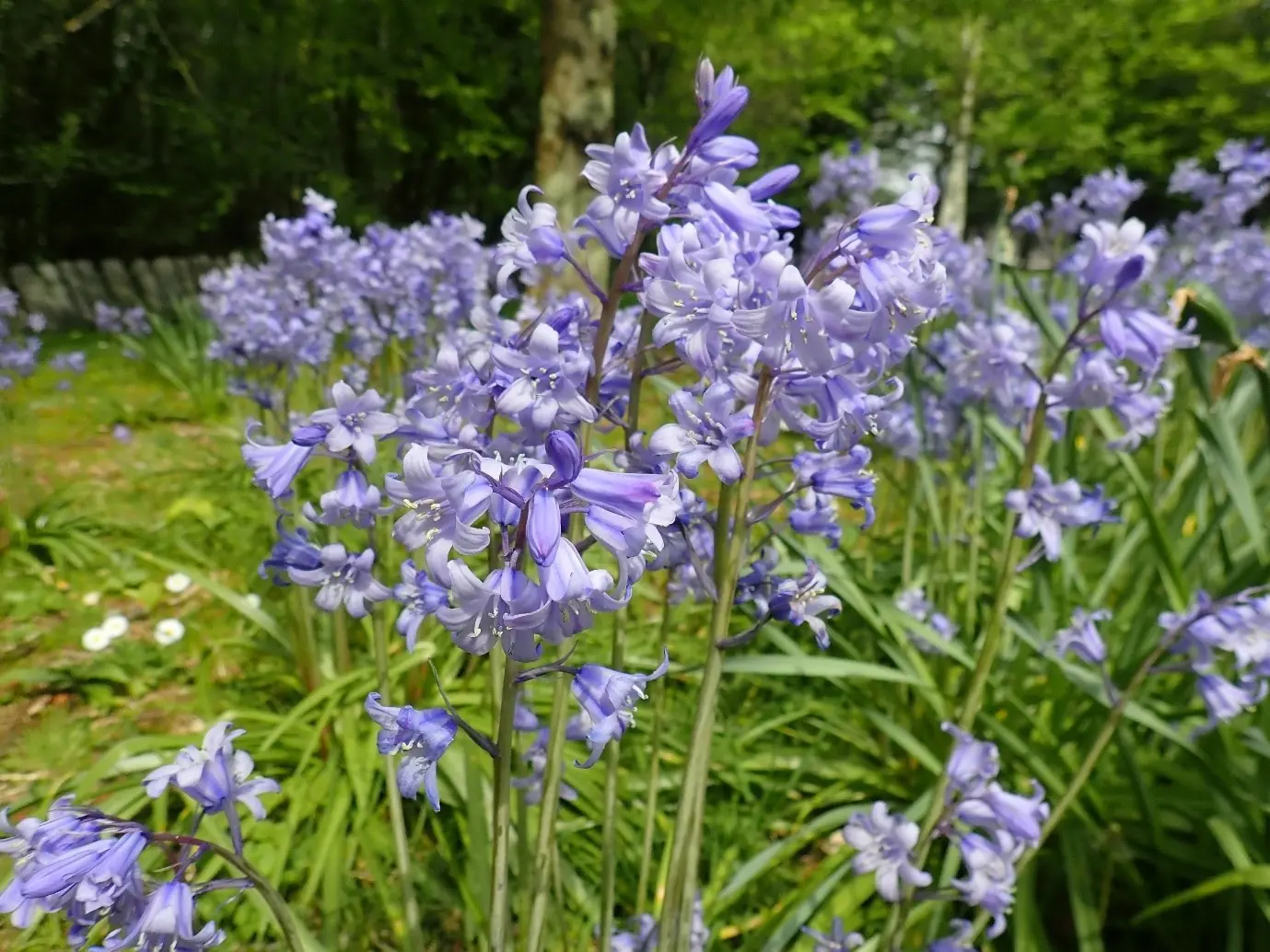 The 'Spanish bluebell', H. hispanica is much less common and rarely escapes from cultivation. Much of the seed set from the plants is hybrid, due to the presence of pollen from the more numerous native H. non-scripta.