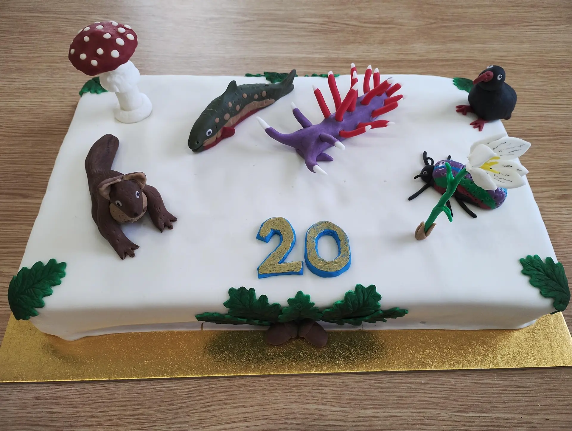 Cofnod was officially 20 years old on 7th October 2025. We celebrated this momentous event at this year's Cofnod Conference in Bangor on 7th November. Roy gave a presentation, highlighting '20 years of Cofnod', followed by the cutting of a North Wales species themed anniversary cake (decorated by Richard), by our former Chairman and founding director Les Starling. We've also worked with a local Artist, Ffion Gwyn, to produce a 20th Anniversary logo and a unique piece of artwork, which we will release soon. Thank you to everyone who has supported us over the past 20 years and here's to another successful 20 years to come!