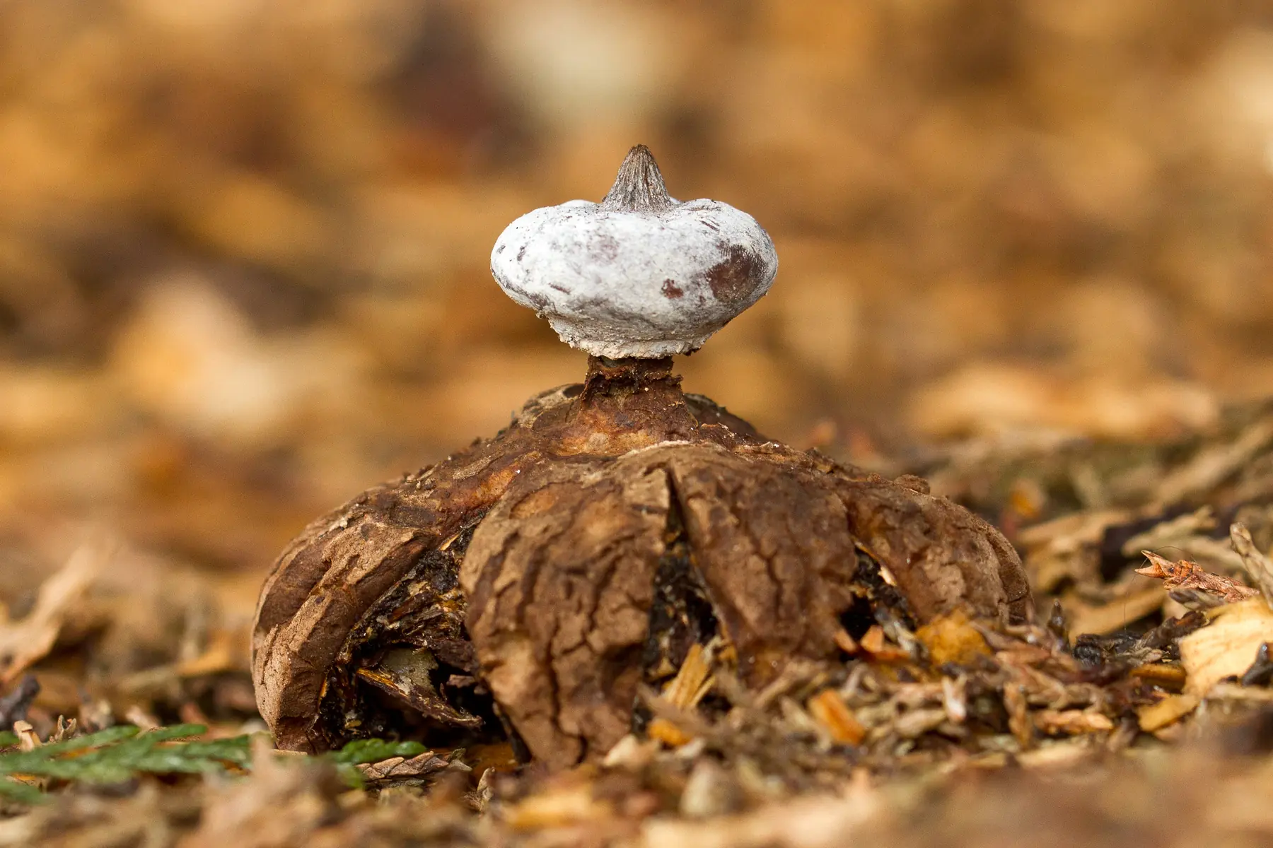 The Collared Earthstar (Geastrum michelianum, formerly G. triplex) is the commonest, whilst Striated Earthstar (Geastrum striatum) and Crowned Earthstar (Geastrum coronatum) are the next most recorded. You may even find something really unusual like Geastrum britannicum, a species that was only described a few years ago and currently the only records come from a handful of sites around the UK; it was found in NE Wales a few years ago.