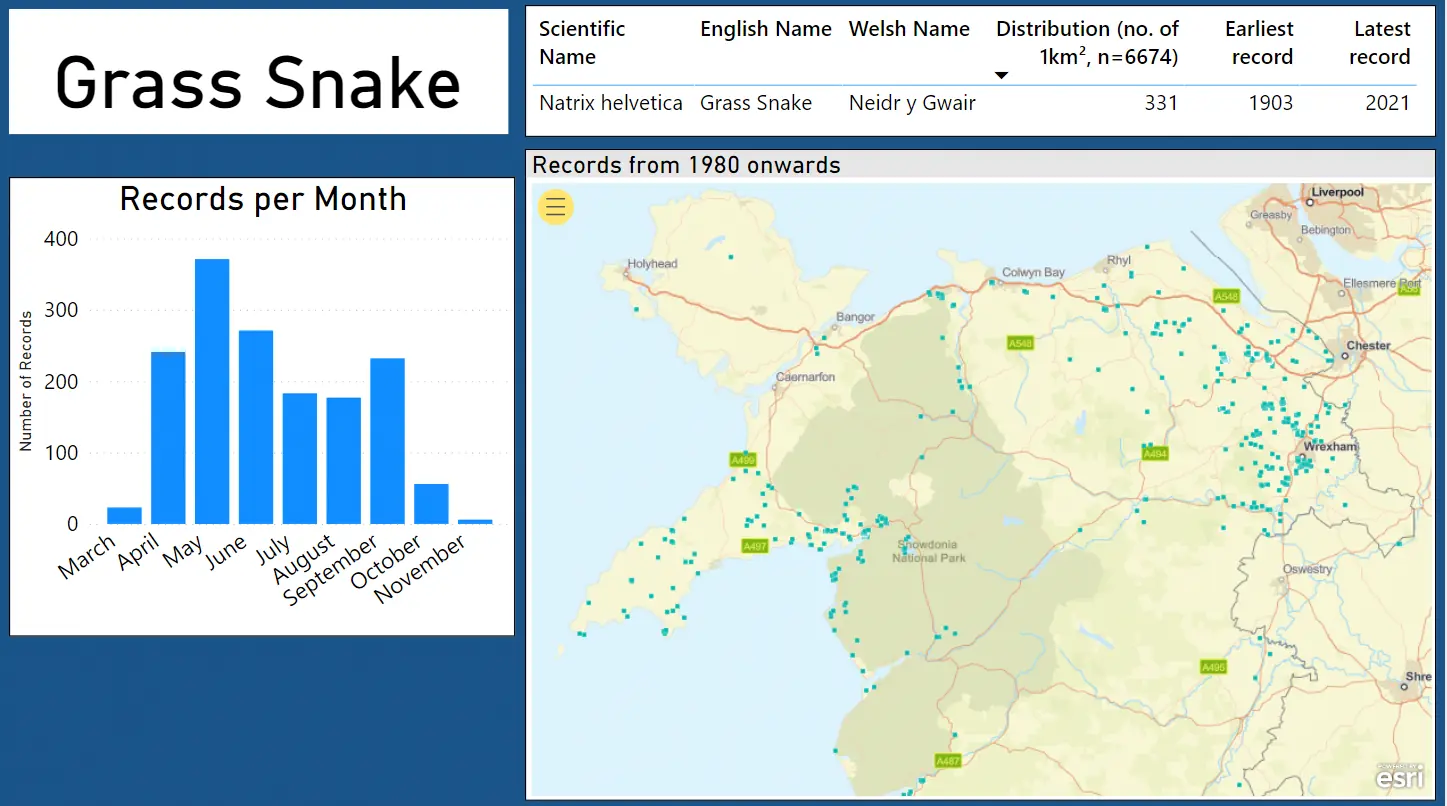 We haven’t seen much sunshine this spring but on warm, even overcast days, you might see Grass Snakes out and about. One of two native snake species to occur in Wales, Grass Snakes are an active species that might be seen basking and swimming in garden ponds, lakes and canals.