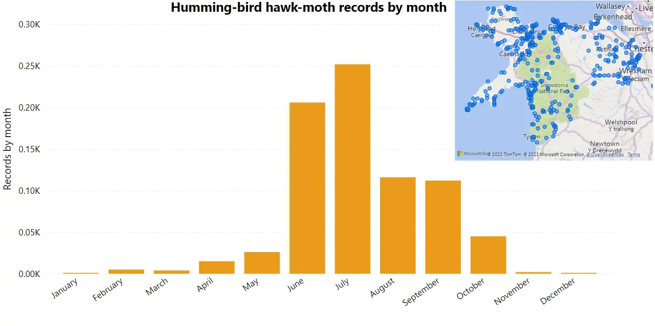 Look out for this spectacular moth anywhere with flowers and send your records, ideally with photos, to the Cofnod ORS or the LERC Wales App.