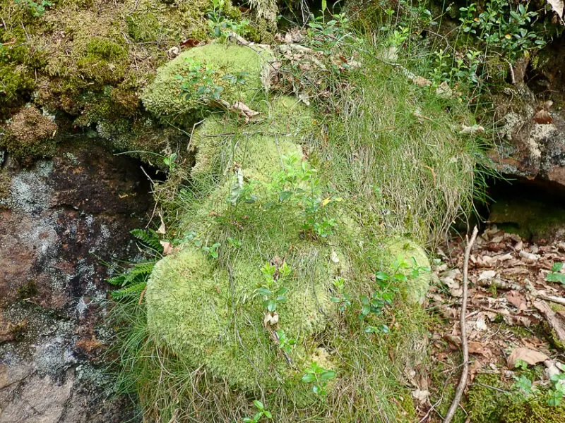 There are about 850 taxa of mosses and liverworts in Wales, a substantial proportion of the bryophytes species that are found in the whole of Europe. Many of these species thrive in the comparatively warm, wet climate of North Wales but because they are so small they tend to be overlooked. One group that are recognisable are the Leucobryums or ‘White’ Mosses. They form dense cushions and hummocks in bogs, heathland and woodland. They can appear as large spreading masses, small compact cushions or sometimes form detached ‘moss balls’. They can also occur as epiphytes on trees.