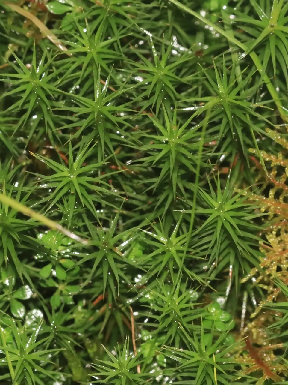 It is one of our largest mosses with tough wiry stems that grow up to 40cm tall. Its large size is accompanied by interesting adaptations not seen in other unrelated bryophytes. It has specialised water conducting tissue to transport water from the base of the plant. Its spirally arranged dark green pointed leaves are also thicker than those of most other mosses. The upper surfaces are covered with ridges of photosynthetic cells which trap moist air allowing photosynthesis to take place whilst minimising water loss.