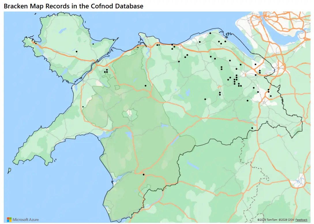 A brief look at the NBN Atlas highlights the scale of under-recording. While there are over 144,000 records of bracken, there are just over 2,000 records of Bracken Map. In reality, these figures should be far more closely aligned. In North Wales in particular, the distribution of records is surprisingly sparse, with large areas showing no records at all. This month, I am setting myself the challenge of recording Bracken Map in 20 previously unrecorded 1 km squares. If others were to record it even once during the same period, together we could go a long way towards filling some significant gaps on the map.