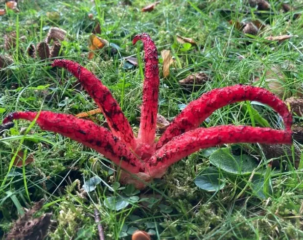Whilst you are in the mood to look for fungi (and now that you are using your nose!), you can keep an eye out for some of the even weirder species that are turning up in North Wales. Red Cage (Clathrus ruber) and Devil’s Fingers (Clathrus archeri) are becoming more widespread in the UK andare finally arriving in our area.